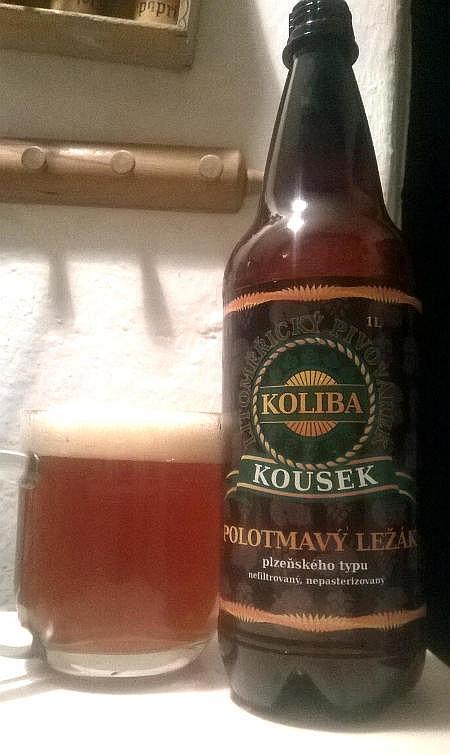 Posledním z trojice piv, která jsem zakoupil v litoměřickém pivovaru Koliba, byl polotmavý ležák Kousek, takto zakalené pivo nahnědle jantarové barvy se středně hustou, postupně opádavající pěnou béžové barvy.